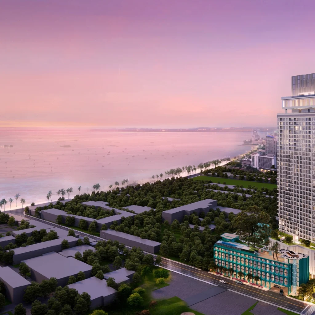 Tait Pattaya, developed by Raimon Land, is a modern high-rise condominium in Central Pattaya that blends coastal-inspired design with urban sophistication. Just minutes from the beach, it offers panoramic views, elegant interiors, and resort-style amenities including sky pools, wellness facilities, and premium lounges—ideal for both luxury living and investment.
